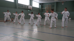 Am Nachmittag stand dann für unsere orange Gurte die Kata Heian Sandan und deren Anwendung am Gegner auf dem Plan. Für die Trainingsgruppe ab violett Gurt gab es danach die Kata Hangetsu. Ebenfalls mit deren Anwendung.