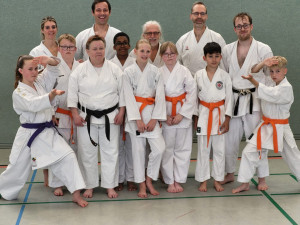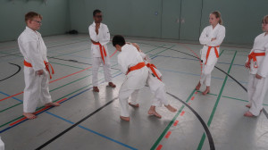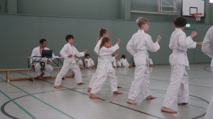 Adam, David, Enie, Erik, Hagen, Helene, Hugo, Joss, Karlotta, Linus, Lori, Louis, Mika, Robin und Tarek zum 8. Kyu (gelber Gürtel)