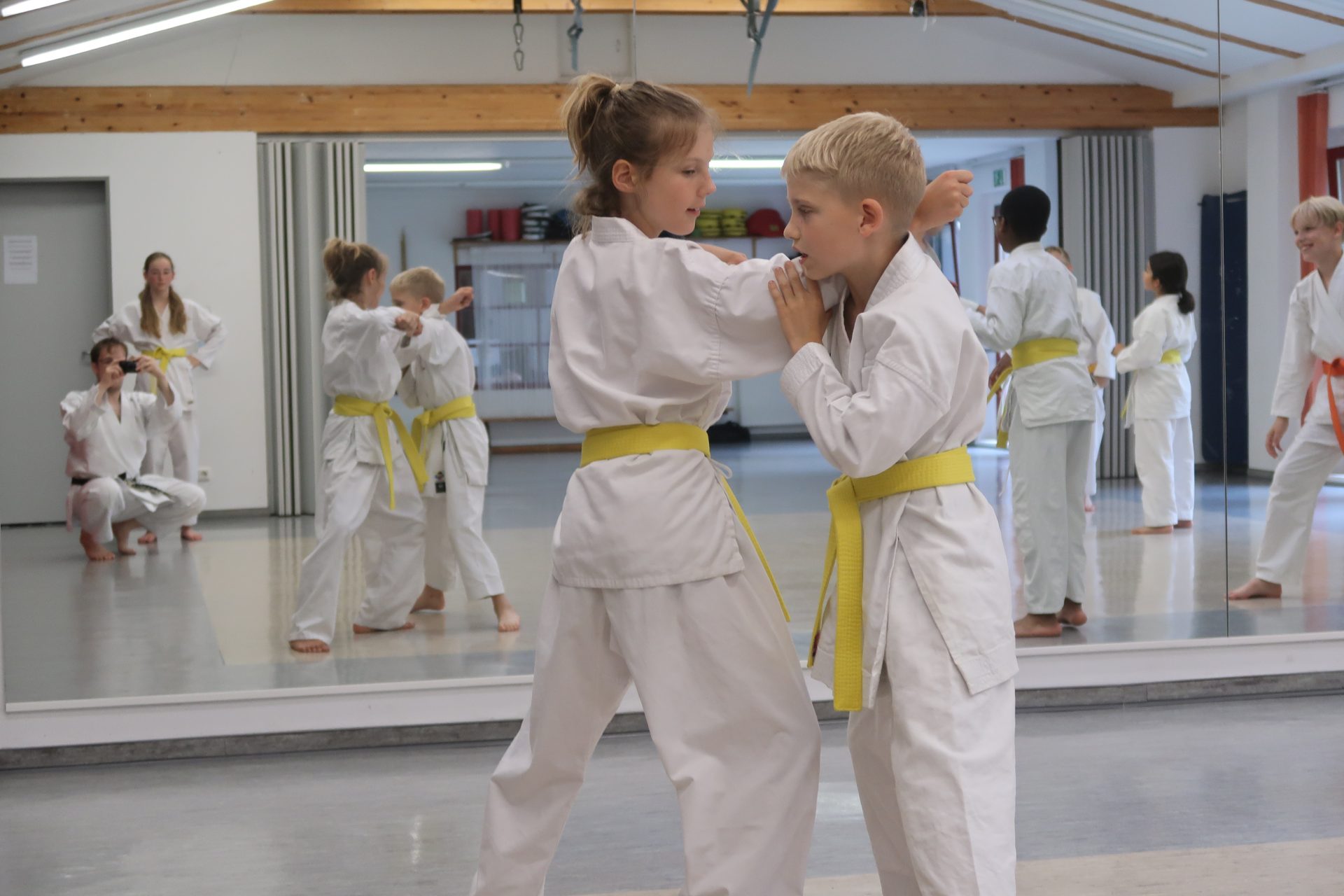 Die japanischen Schriftzeichen für Karate 空手道 lassen sich mit „Weg der leeren Hand“ übersetzen. Karate beinhaltet daher eine Vielzahl an unterschiedlichen waffenlosen Techniken. Das Training umfasst Schlag-, Stoß- ,Tritt-, Hebeltechniken und Würfe.